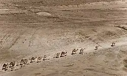 Uma caravana (do árabe qairauãn, através do italiano ou do francês) é um comboio de mercadores, viajantes, peregrinos, torcedores[1] ou qualquer tipo de pessoa, que agrupam-se para percorrer grandes distâncias, muitas vezes por motivo de segurança.[2] As caravanas eram usadas principalmente em áreas desérticas e em toda a Rota da Seda, onde viajar em grupos ajudava na defesa contra bandidos, bem como ajudava a melhorar as economias de escala no comércio. Algumas das primeiras caravanas na Rota da Seda foram enviadas pelo imperador Wu de Han no século 2 a.C., quando essa vasta rede de estradas "nasceu", e quando a China começou a exportar grandes quantidades de seda e outros produtos para o oeste, particularmente destinados ao Império Romano.[3]
