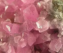 'Calcita': Quando seus cristais apresentam a forma romboédrica ou trigonal. É o mineral mais estável dos carbonatos de cálcio.[3]