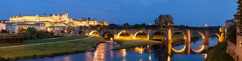 - ↑ «Things to See in the Languedoc: Historic Cities: Cité of Carcassonne & Bastide of Carcassonne». www.midi-france.info. Consultado em 9 de outubro de 2020