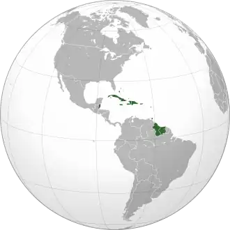 Caribe (português brasileiro e português europeu),[5] também chamado Caraíbas (apenas em português europeu) e América Caribenha, é uma região do continente americano formada pelo mar do Caribe, suas ilhas e Estados insulares. Também é chamado de Antilhas ou Índias Ocidentais, nome originado pela crença inicial europeia de que o continente americano fosse a Índia (o termo "ocidentais" foi, posteriormente, adicionado para distingui-las da região da Índia "verdadeira"). Os nascidos nas ilhas do Caribe são denominados caribenhos.