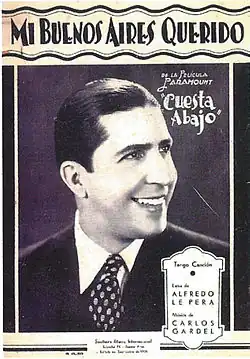 Dentre os compositores mais interpretados por Gardel, pode-se citar: Alfredo Le Pera. Dentre suas interpretações mais famosas, podem-se citar: "Mi Buenos Aires querido", "Por una cabeza", "Volver" e "El día que me quieras".[5]