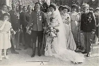 Carlos IV da Hungria, com a rainha Zita e o príncipe herdeiro Oto, após a coroação em Budapeste, 1916.