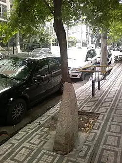 Monumento instalado na Alameda Casa Branca, em São Paulo, que homenageia Marighella, morto nas imediações. A placa frontal foi arrancada