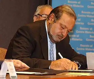 Carlos Slim Helú (Cidade do México, 28 de janeiro de 1940) é um empresário mexicano. É conhecido em seu país por Midas, devido à sua habilidade em transformar empreendimentos decadentes em companhias saudáveis e lucrativas. É o décimo-quarto homem mais rico do mundo, segundo o ranking anual da revista Forbes, com um patrimônio em 2023 de US$ 102 bilhões.[3]