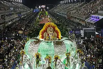 ![]() Desfile da escola de samba Imperatriz Leopoldinense no Carnaval do Rio de Janeiro, o maior do mundo segundo o Guiness.[1] | |