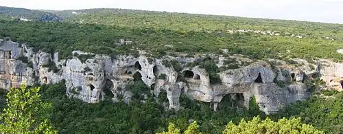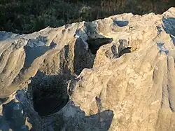 Covas e canais provocados pela carstificação em rocha carbonática.