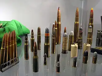 - ↑ Barnes, Frank C. (2006). Cartridges of the World (em inglês) 11.ª ed. [S.l.]: Krause Publications (publicado em 24 de julho de 2006). 480 páginas. ISBN 978-0-89689-297-2. Consultado em 22 de abril de 2021