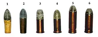 - ↑ Barnes, Frank C. (2009). «American Rimfire Cartridges». Cartridges of the World (em inglês) 12ª ed. [S.l.]: Gun Digest Books (publicado em 20 de outubro de 2009). p. 441. 568 páginas. ISBN 978-0-89689-936-0