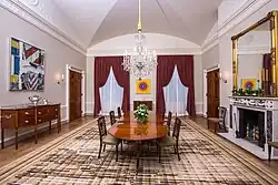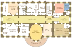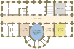 A Casa Branca foi um dos primeiros edifícios governamentais de Washington acessível a cadeiras de rodas, com modificações efectuadas durante a presidência de Franklin D. Roosevelt, que necessitou de usar cadeira de rodas como resultado da sua paraplegia. Durante a administração de Richard Nixon, a primeira-dama Pat Nixon remobilou a Sala Verde, a Sala Azul e a Sala Vermelha, trabalhando com Clement Conger, o curador que eles nomearam.