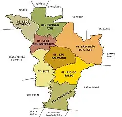 | Municípios limítrofes | Santa Tereza do Oeste, Tupãssi, Toledo, Cafelândia, Corbélia, Ibema, Braganey, Campo Bonito, Catanduvas, Três Barras do Paraná, Boa Vista da Aparecida e Lindoeste |