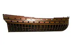Para lhe aumentar a resistência, o costado é suportado por um esqueleto. Este é constituído por: