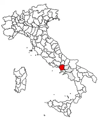 Faz fronteira a norte com o Molise (província de Iśernia e província de Campobasso), a noroeste com o Lácio (província de Latina e província de Frosinone), a este com província de Benevento, a sul com província de Nápoles e a sudoeste com o Mar Tirreno.[1][2][3]