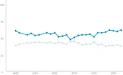 Segundo diversas pesquisas realizadas pela instituição Pew Research Center entre 1995 e 2022, a maioria dos estadunidenses eram a favor do direito ao aborto nas primeiras semanas da gravidez e se opunham a ideia da Suprema Corte de reverter Roe contra Wade.[9] Embora o apoio público ao aborto legal tenha aumentado em duas décadas de votação, ele tem se mantido relativamente estável nos últimos anos. Atualmente, 61% dos estadunidenses dizem que o aborto deve ser legal em todos ou na maioria dos casos, enquanto 37% dizem que deve ser ilegal em todos ou na maioria dos casos.[10]