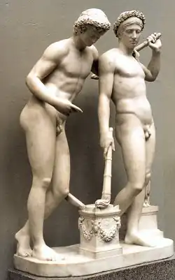 Antiga estátua grega em mármore dos Dióscuros.