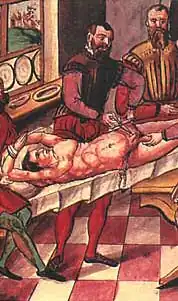 Uma pintura do século XIII mostrando o processo de castração.