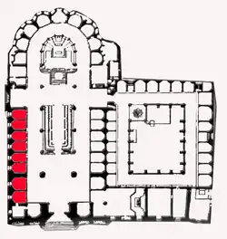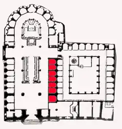 Capela dos Santos Cosme e Damião (esquerda) e antiga sala capitular (direita), com o Cristo de Lepanto ao fundo.