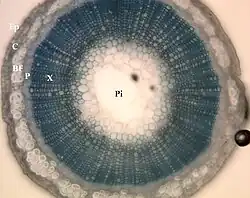 - A medula, a camada parênquimatosa central (que, nas plantas com crescimento secundário, pode ter desaparecido).