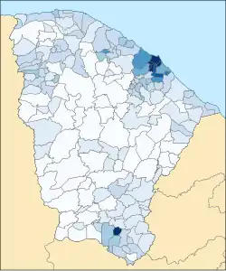 Ceará é uma das 27 unidades federativas do Brasil. Está situado no norte da Região Nordeste, faz divisa com Rio Grande do Norte e Paraíba a leste, Pernambuco ao sul e Piauí a oeste, além de ser banhado pelo Oceano Atlântico a norte e nordeste. Sua área total é de 148 894,442 km²,[2] ocupando 9,37% da área do Nordeste e 1,74% da superfície do Brasil. A população do estado em 2022 era de 8 794 957 habitantes, sendo o oitavo estado mais populoso do país.[2]