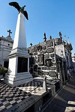 José C. Paz: su tumba tiene representados varios ángeles (que simbolizan la resurrección), realizados por el escultor francés J. F. Cután (quien también realizó trabajos en las bóvedas de Nicolás Avellaneda y Luis María Campos).