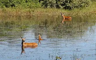 13. 1 2 Tomas, W. M.; Salis, S. M.; Silva, M. P.; Miranda Mourão, G. (2001). «Marsh deer (Blastocerus dichotomus) distribution as a function of floods in the Pantanal wetland, Brazil». Studies on Neotropical Fauna and Environment. 36 (1): 9-13. doi:10.1076/snfe.36.1.9.8877