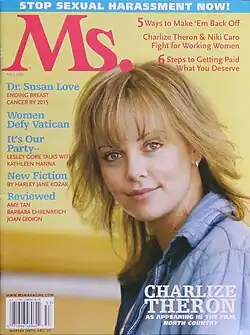 - ↑ Hall, Katy (17 de setembro de 2009). «Charlize Theron: I Won't Get Married Until My Gay Friends Can». HuffPost. Consultado em 15 de agosto de 2024. Cópia arquivada em 23 de setembro de 2009