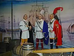 Estátuas representando a visita de três cheroquis a Londres, no Museu do Índio Cherokee, em Cherokee, na Carolina do Norte, nos Estados Unidos