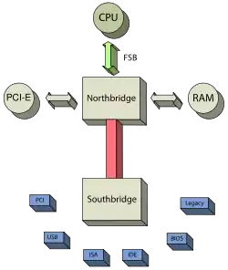 No primórdio da informática as primeiras placas-mãe continham vários pequenos circuitos integrados, dispostos separadamente para gerenciar cada componente/dispositivo do computador.[1] Sendo gradativamente integrados e reduzindo a quantidade necessária deles, surgindo assim o barramento (ou BUS) PCI e as Bridges (ou Pontes).[1] Separando em apenas dois chips nomeados como Northbridge (Ponte Norte, parte superior da placa-mãe) e Southbridge (Ponte Sul) com responsabilidades específicas.[1][2]