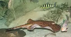 | Exemplo de peixes cartilaginosos: Elasmobranchii na parte superior da imagem e Holocephali na parte inferior da imagem. | |