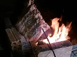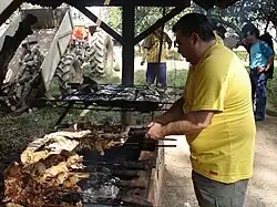 Churrasco é uma iguaria feita à base de carne in natura ou processada, assada sobre o fogo ou brasas, com a utilização de espetos ou grelhas.[1][2]