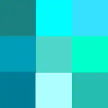 | HSV (h, s, v) | (180°, 100%, 100%) |