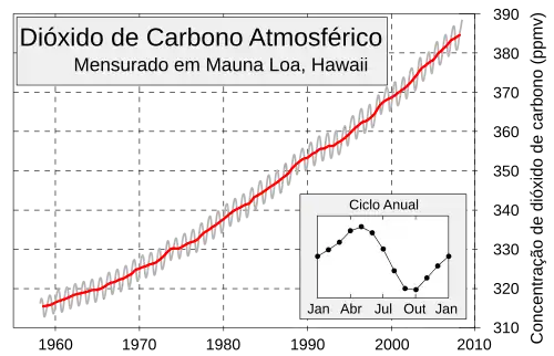É possível verificar que a maior troca entre o stock terrestre e stock atmosférico resulta dos processos da fotossíntese e da respiração. Nos dias de Primavera e Verão as plantas absorvem a luz solar e o CO2 da atmosfera e, paralelamente, os animais, plantas e micróbios, através da respiração devolvem o CO2. Quando a temperatura ou umidade é muito baixa, por exemplo no Inverno ou em desertos, a fotossíntese e a respiração reduz-se ou cessa, assim como o fluxo de carbono entre a superfície terrestre e a atmosfera. Devido à declinação da Terra e à desigual distribuição de vegetação dos hemisférios, existe uma flutuação ao longo do ano a qual é visível nos diversos gráficos da variação da concentração anual do CO2, como por exemplo na curva de Keeling. Em 1958 o cientista Charles David Keeling (oceanógrafo do Scripps Institute of Oceanography),iniciou uma série de experiências no monte Mauna Loa, Havai, que lhe permitiram medir, com bastante precisão, a concentração de CO2 na atmosfera.