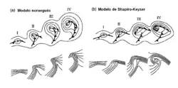 Uma segunda teoria competitiva sobre a intensificação de ciclones extratropicais nos oceanos é o modelo de Shapiro-Keyser, desenvolvido em 1990.[69] As principais diferenças do modelo Shapiro-Keyser em comparação ao modelo norueguês de ciclones são a fratura da frente fria, o tratamento das oclusões do tipo quente e frentes quentes como o mesmo sistema, além de permitir que a frente fria prossiga através do setor quente perpendicular à frente quente.[69] Este modelo foi baseado em ciclones oceânicos e em suas estruturas frontais, como visto em observações de superfície e em projetos anteriores que usaram aeronaves para determinar a estrutura vertical das frentes no Atlântico noroeste.[69]