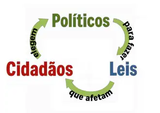 A ideia moderna de cidadania ainda valoriza a participação política, mas geralmente se realiza por meio de sistemas elaborados de representação política indireta, como a democracia representativa.[14] A cidadania moderna é muito mais passiva; a ação é delegada a outros e a cidadania, frequentemente, é mais uma limitação à ação do que um estímulo a agir. No entanto, os cidadãos geralmente estão cientes de suas obrigações perante as autoridades e reconhecem que esses vínculos muitas vezes limitam o que podem fazer.