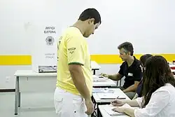 Os direitos políticos são regulados no Brasil pela Constituição Federal em seu artigo 14,[20] que estabelece como princípio da participação na vida política nacional o sufrágio universal. Nos tempos da norma constitucional, o alistamento eleitoral e o voto são obrigatórios para os maiores de dezoito anos, e facultativos para os analfabetos, os maiores de dezesseis e menores de dezoito anos e os maiores de setenta anos.