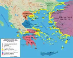 De acordo com uma das teorias, a emergência das cidades-Estado gregas tornou-se possível durante o declínio do sistema tribal entre 1000 e 800 a.C., quando comunidades dissidentes começaram a formar autogovernos, a partir dos quais surgiram as cidades-Estado na Grécia continental, nas ilhas do Egeu e no oeste da Ásia Menor. À medida que a população e a atividade económica das primeiras pólis cresciam, grupos de colonos fundaram novas cidades-Estado ao longo das costas dos mares Mediterrâneo e Negro entre 750 e 550 a.C. As cidades-Estado gregas distinguiam-se por uma grande diversidade de formas de organização social, da monárquica à democrática. Esta diversidade era, simultaneamente, a força das cidades-Estado — onde se alcançou um progresso do pensamento científico e social sem precedentes para a época — e a sua fraqueza: em diferentes momentos, caíram vítimas de estruturas estatais agressivas de maior escala — a Macedónia, Cartago e Roma (esta última foi originalmente criada como uma cidade-Estado, mas cresceu até se tornar um império como resultado de guerras de conquista bem-sucedidas e da centralização do poder estatal)[6]. Uma alternativa à conquista eram as alianças voluntárias ou semivoluntárias para defesa mútua (as ligas do Peloponneso, Deliana e Beócia), contudo, estas revelaram-se efémeras.