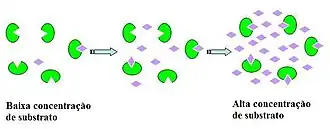 As reacções catalisadas por enzimas são saturáveis, e a sua velocidade de catálise não indica uma resposta linear face ao aumento de substrato. Se a velocidade inicial da reacção é medida sobre uma escala de concentrações de substrato (denotada como [S]), a velocidade de reacção (v) aumenta com o acréscimo de [S]. Todavia, à medida que [S] aumenta, a enzima satura-se e a velocidade atinge o valor máximo Vmax.