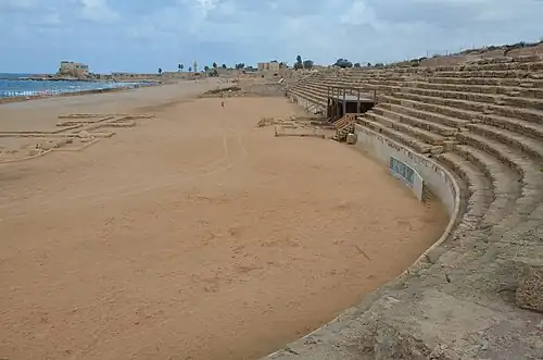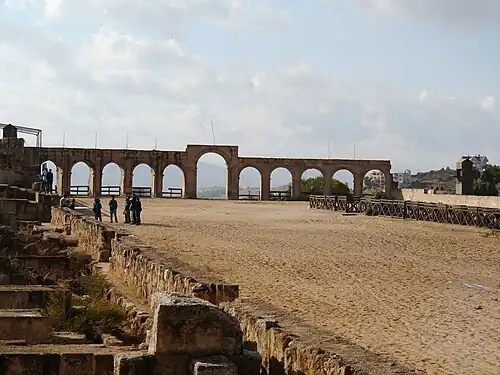 - Fora das muralhas, com distâncias variando de 300 metros (Gérasa) até 1,5 quilômetro (Circo de Léptis Magna, Líbia).