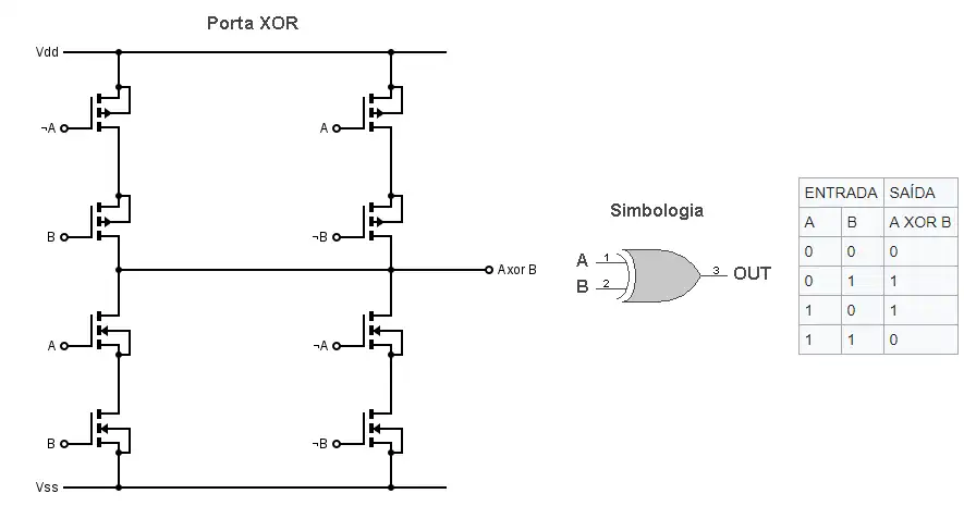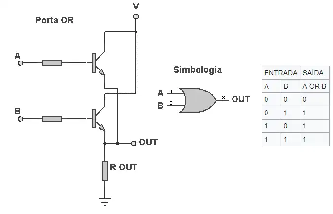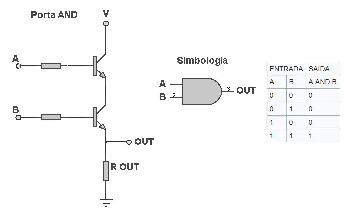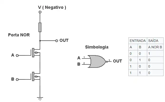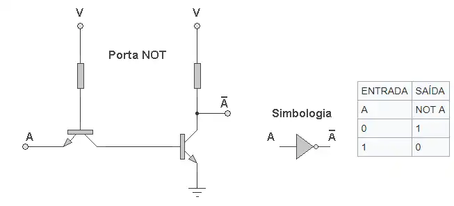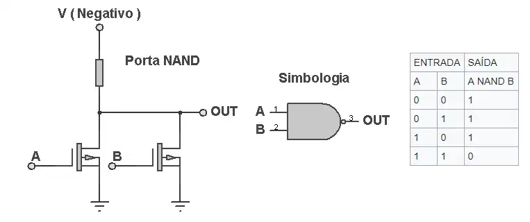 Como foi anteriormente dito, as portas lógicas são formadas a partir de transistores, mosfets e resistores, vistas nos modelos logo abaixo:
