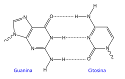 A citosina pode ser encontrada como parte do DNA, como parte do RNA ou como parte de um nucleotídeo e forma par C-G com a guanina através de três ligações de hidrogênio.