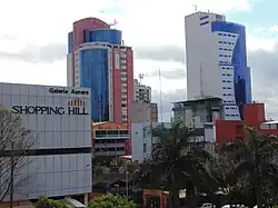 Panorama do centro comercial da cidade Paróquia de São Lucas Anfiteatro del Lago Centro da cidade Ponte Internacional da Amizade, entre o Brasil e o Paraguai. Torre World Trade Center Ciudad del Este | |