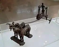 A economia da civilização do Indo parece ter dependido significativamente do comércio, o que foi facilitado por grandes avanços na tecnologia de transporte. A CVI pode ter sido a primeira civilização a usar o transporte com rodas.[116] Esses avanços podem ter incluído carros de boi idênticos aos vistos hoje no sul da Ásia, além de barcos. A maioria desses barcos provavelmente era pequena, de fundo chato, talvez movida a vela, semelhante à que se pode ver hoje no rio Indo; no entanto, há evidências secundárias de embarcações de alto mar. Os arqueólogos descobriram um enorme canal dragado e o que consideram uma instalação de ancoragem na cidade costeira de Lotal, no oeste da Índia (estado de Guzerate). Uma extensa rede de canais, usada para irrigação, também foi descoberta por H.P. Francfort.[117]