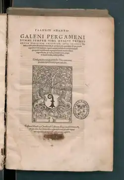 Cláudio Galeno ou Élio Galeno, em latim Claudius Galenus e grego Κλαύδιος Γαληνός, (Pérgamo, c. 129 - provavelmente Sicília, ca. 217), mais conhecido como Galeno de Pérgamo foi um proeminente médico e filósofo romano de origem grega,[1] e provavelmente o mais talentoso médico investigativo do período romano. Suas teorias dominaram e influenciaram a ciência médica ocidental por mais de um milênio. Seus relatos de anatomia médica eram baseados em macacos, visto que a dissecação humana não era permitida no seu tempo,[2] mas foram insuperáveis até a descrição impressa e ilustrações de dissecções humanas por Andreas Vesalius em 1543.[3] Desta forma Galeno é também um precursor da prática da vivissecção e experimentação com animais.