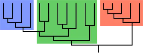 Qualquer grupo assim considerado é um grupo monofilético de organismos,[1] e podem ser modelados em um cladograma: um diagrama dos organismos em forma de árvore.