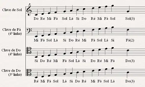- ↑ «🎵 Clave de sol - o que é e como se aplica na música». MusicDot. Consultado em 21 de julho de 2022