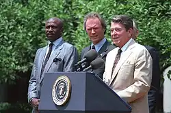 ![]() Eastwood em discurso na cidade de Carmel-by-the-Sea. | |