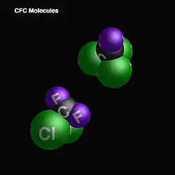 Um clorofluorocarboneto (clorofluorcarboneto, clorofluorcarbono ou CFC) é um composto baseado em carbono que contém cloro e flúor, responsável pela redução da camada de ozônio, e antigamente usado como aerossóis e gases para refrigeração, sendo atualmente proibido seu uso em vários países.[1] O banimento da produção e uso dos gases CFC ocorreu em 1987 no Protocolo de Montreal, que levou à substituição destes pelos hidroclorofluorcarbonos, hidrofluorcarbonos e perfluorcarbonos, que embora contribuam para o aquecimento global não são danosos à camada de ozônio.[2]