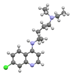 Cloroquina é um medicamento usado no tratamento e profilaxia de malária em regiões onde a malária é susceptível ao seu efeito.[1] Em alguns tipos de malária, estirpes resistentes e casos complicados geralmente é necessário administrar outros medicamentos.[1] A cloroquina é ocasionalmente usada no tratamento de amebíase extraintestinal, artrite reumatoide e lúpus eritematoso.[1] É um medicamento de administração oral.[1]