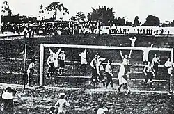 São Paulo Athletic Club e Club Athletico Paulistano na final do Campeonato Paulista de 1902 (2x1), primeiro estadual jogado no Brasil.
