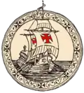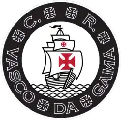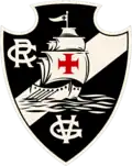 O escudo de fundação do Vasco, utilizado desde 1899, consiste de uma caravela em um brasão redondo.[174] Logo em 1903, ocorreu a primeira modificação, quando na administração do presidente Alberto Carvalho foi adicionado um fundo negro e as iniciais do clube, separados por seis cruzes de Cristo, circundando o escudo.[175]
