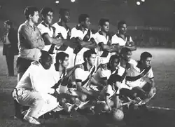 A década de 1970 foi marcada pelo surgimento do ídolo Roberto Dinamite e pelo goleiro argentino Andrada.[73] O Vasco da Gama conquistou o Campeonato Carioca em 1970 e 1977,[74][75] com destaque para a chamada Barreira do Inferno, composta por Orlando Lelé, Abel Braga, Geraldo e Marco Antônio,[76] que chegou ao recorde mundial de maior tempo sem sofrer gols, pelo goleiro Mazarópi.[77] Já em 1974, o clube foi campeão brasileiro pela primeira vez, tendo Roberto Dinamite como artilheiro da competição, e se sagrando o primeiro time do Rio de Janeiro a conquistar o torneio nacional.[78][79][80]